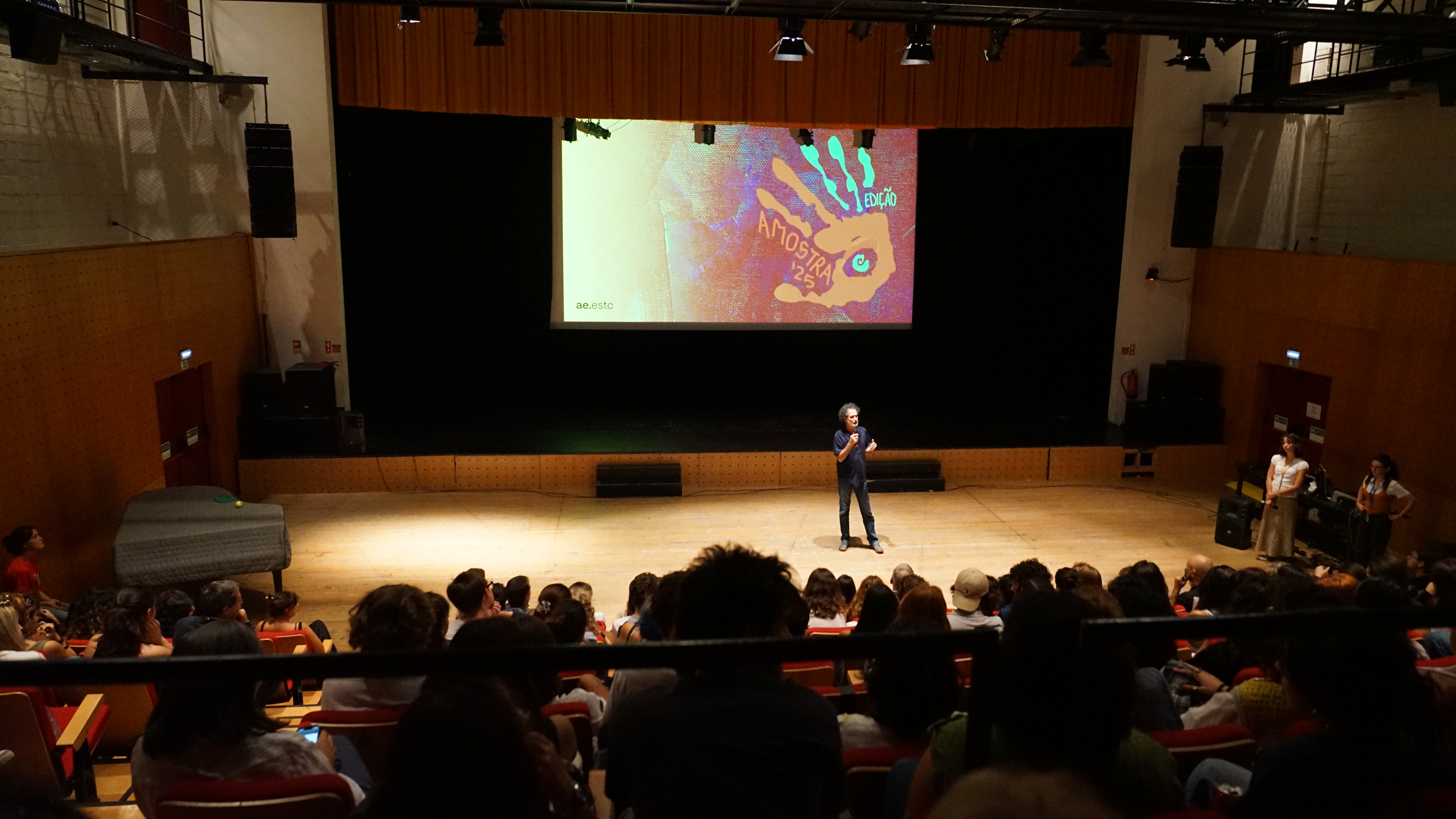 A cerimónia de abertura do ano letivo 2025/2026 teve lugar no passado dia 29 de setembro no nosso Grande Auditório, assim como na inauguração do Festival Amostra @amostrafestival, organizado pela Associação de Estudantes da ESTC @aeestc com a presença e participação do Presidente da Escola Superior de Teatro e Cinema, o Professor Emídio Buchinho; o Presidente do Politécnico de Lisboa, o Professor António Belo; e, em representação do Departamento de Cinema, o Professor Luís Fonseca e, do Departamento de Teatro, a Professora Maria João Vicente; entre outros.